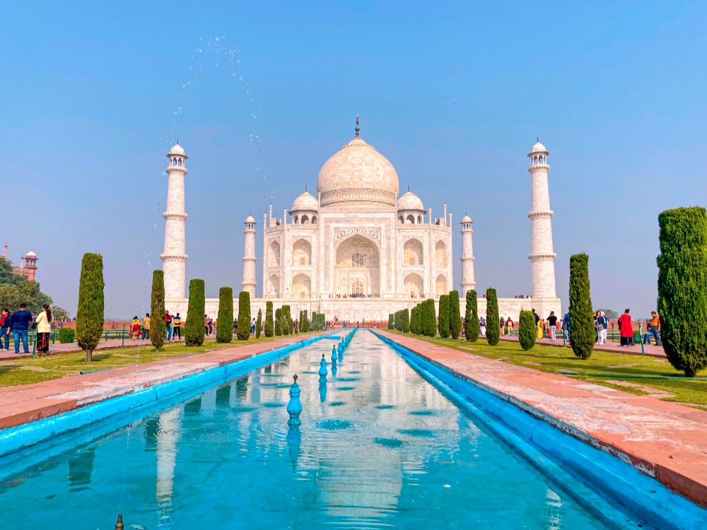Fahrt nach Agra und Besichtigung des weltberühmten Taj Mahal – ein Meisterwerk aus weissem Marmor, erbaut in 22 Jahren als Symbol ewiger Liebe.